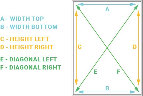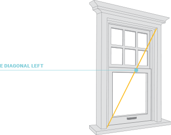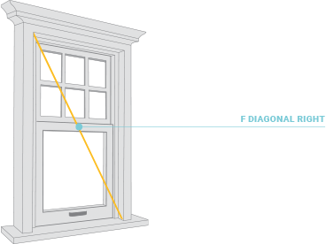 Repeat instructions for E Diagonal Left , but with the measure tape going from the bottom right joint of the window frame to the top left joint. Write the measurement under ‘F Diagonal Right’ on the Measure Form. Try to keep the tape measure taut when measuring diagonals.
