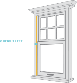 Using the same frame step as before, measure from the bottom left of the window to the top of the frame’s left side. Measure Twice! Write these measurements on your Measure Form under ‘C Height Left’.