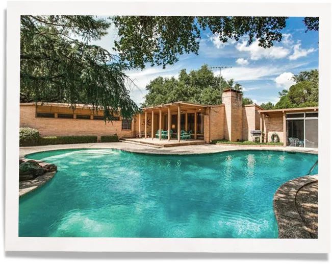 The house was built in 1959 for dress designer Ed Cupaioli and his wife Margaret, an NBC radio and Broadway singer. It is a mid-century modern with carrara marble flooring throughout, red oak molding that makes the walls look like Japanese shoji screens, large windows and a free form pool outback. The couple entertained in the house, which saw its share of illustrious guests: Tony Bennett, Frank Sinatra, Doris Day, Ann Miller. It is easy to picture them there.